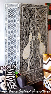 Black Bone Inlay Peacock Design Almirah/Cabinate |