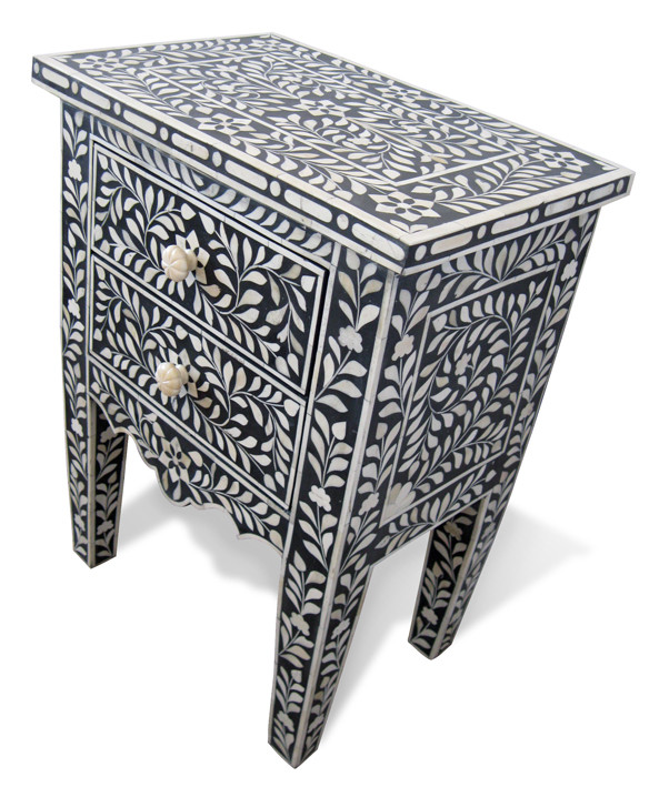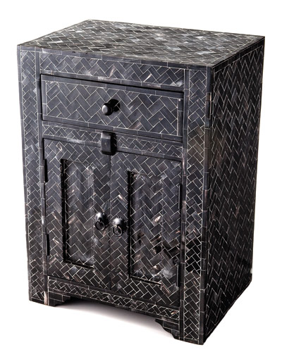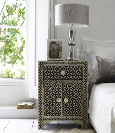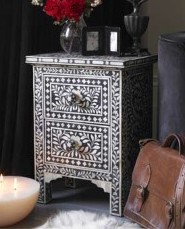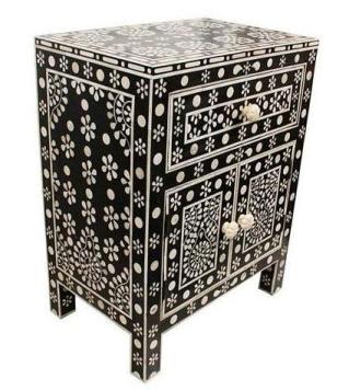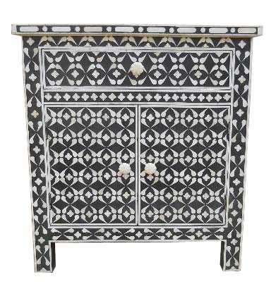 BONE INLAY BEDSIDE CABINET IN BLACK