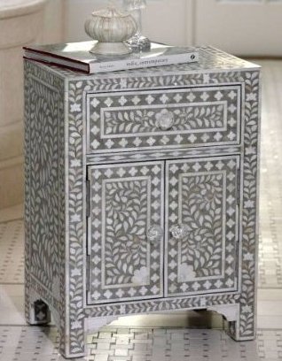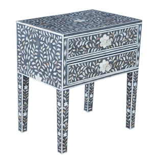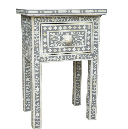 BONE INLAY BEDSIDE TABLE IN GREY