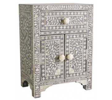 BONE INLAY BEDSIDE CABINET IN GREY