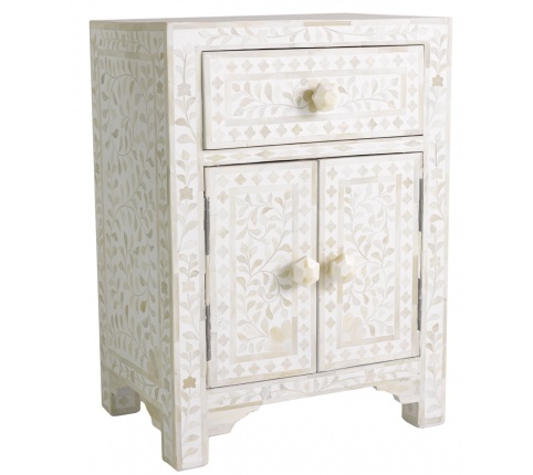 MOP INLAY BEDSIDE CABINET IN WHITE