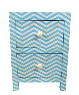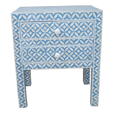 BONE INLAY BEDSIDE CABINET IN TURQUISE BLUE