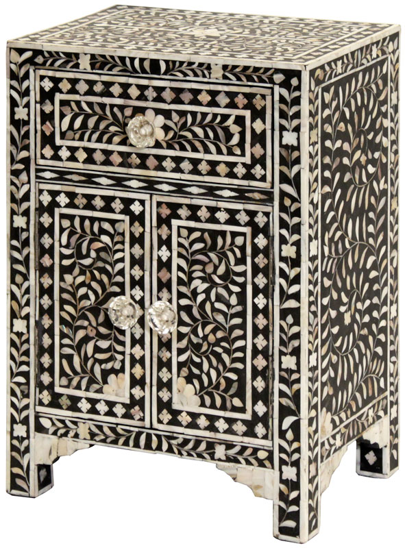 MOP INLAY BEDSIDE CABINET IN BLACK