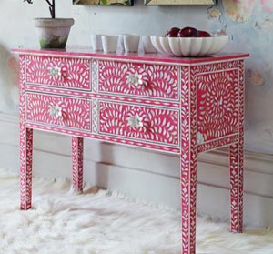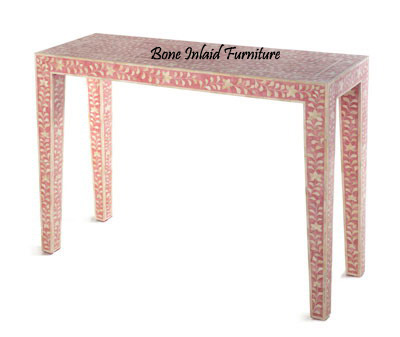 BONE INLAY STRIPS DESIGN CONSOL TABLE