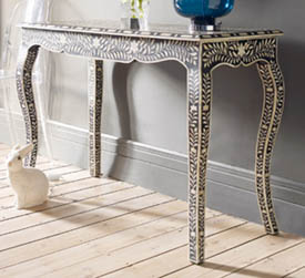 BONE INLAY CONSOL TABLE IN HALF MOON SAFE