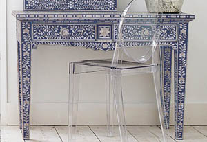 BONE INLAY ROYAL BLUE CONSOLE TABLE
