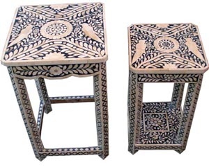 Bone Inlay Parrot Design Stool Set |