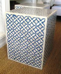 Bone Inlay Square Stool In Blue |